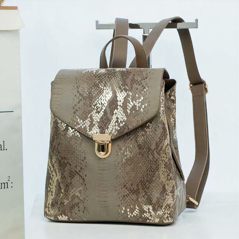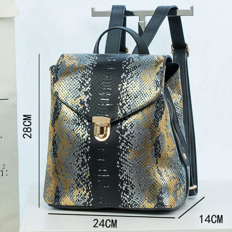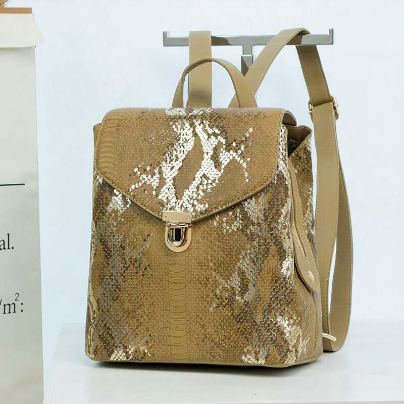 Fabriqué à partir de similicuir de qualité, ce sac à dos est orné d’un motif python qui lui donne un look unique et sophistiqué. La fermeture à glissière robuste assure la sécurité de vos effets personnels et le compartiment principal offre suffisamment d’espace pour tous vos essentiels.