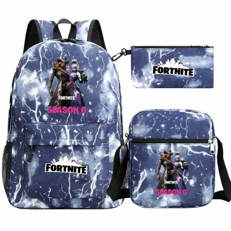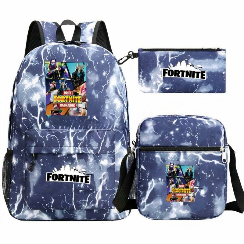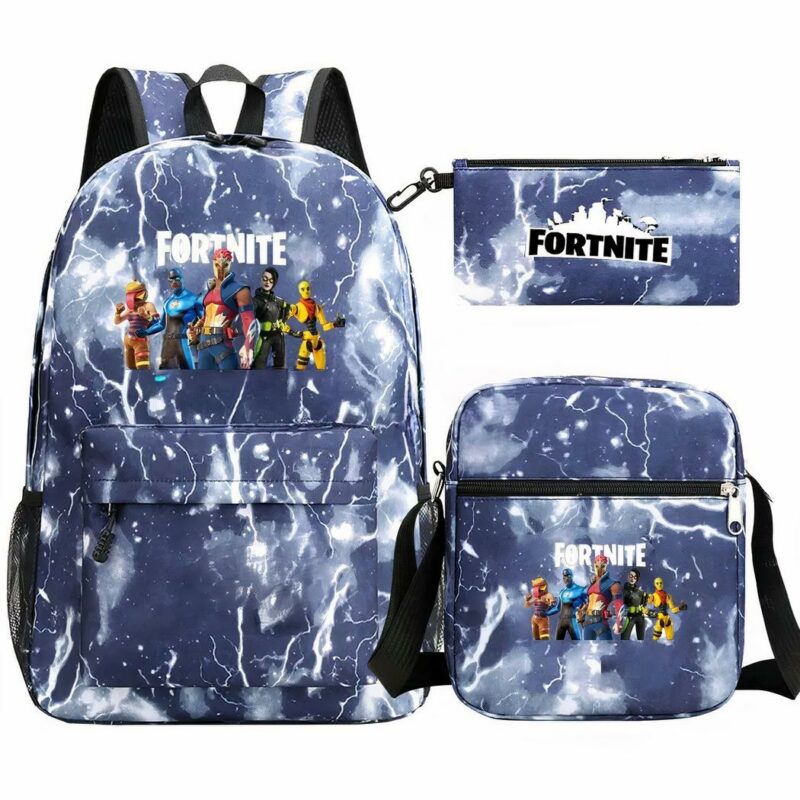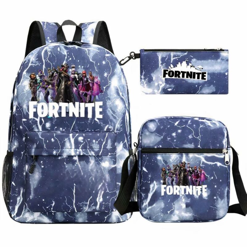 Sac à dos Fortnite bleu avec éclairs ensemble 3 pièces