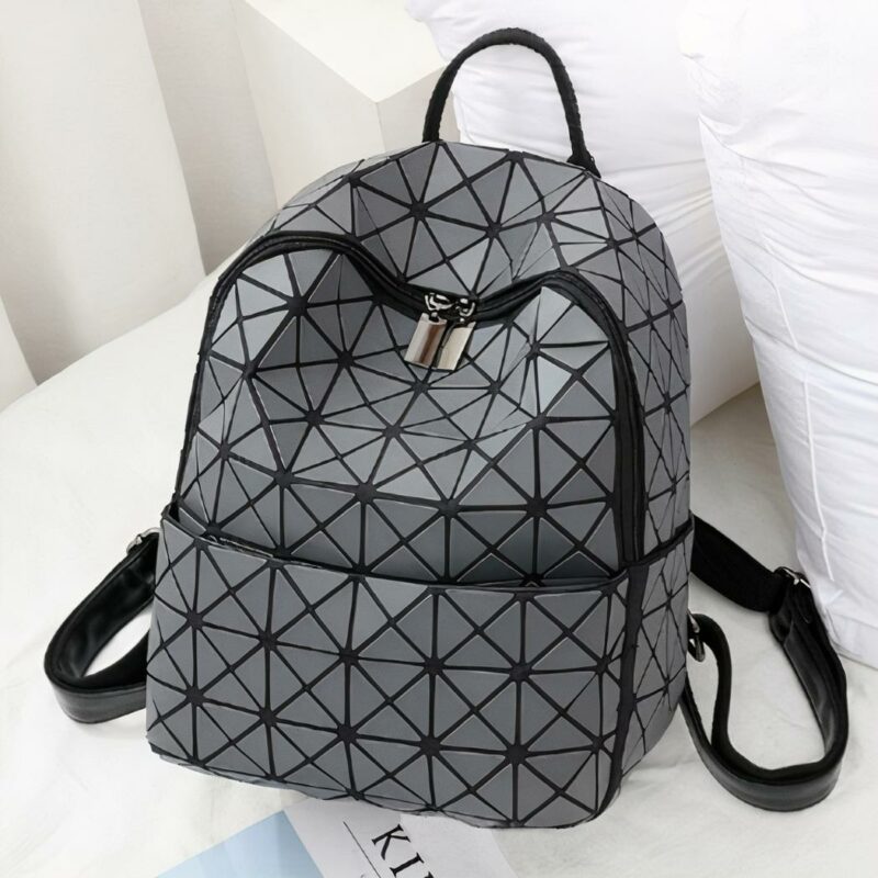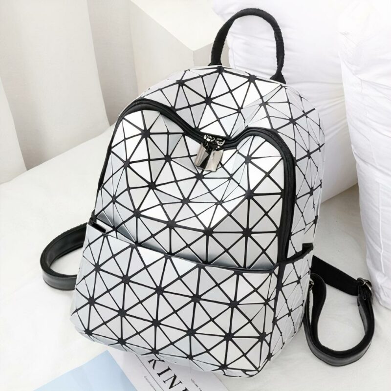 Ce sac à dos holographique géométrique est une pièce unique et moderne qui saura satisfaire tous les goûts. Sa couleur éclatante et ses motifs géométriques tridimensionnels lui donnent un look très original. Son extérieur est en similicuir résistant, ce qui le rend parfait pour une utilisation quotidienne.
