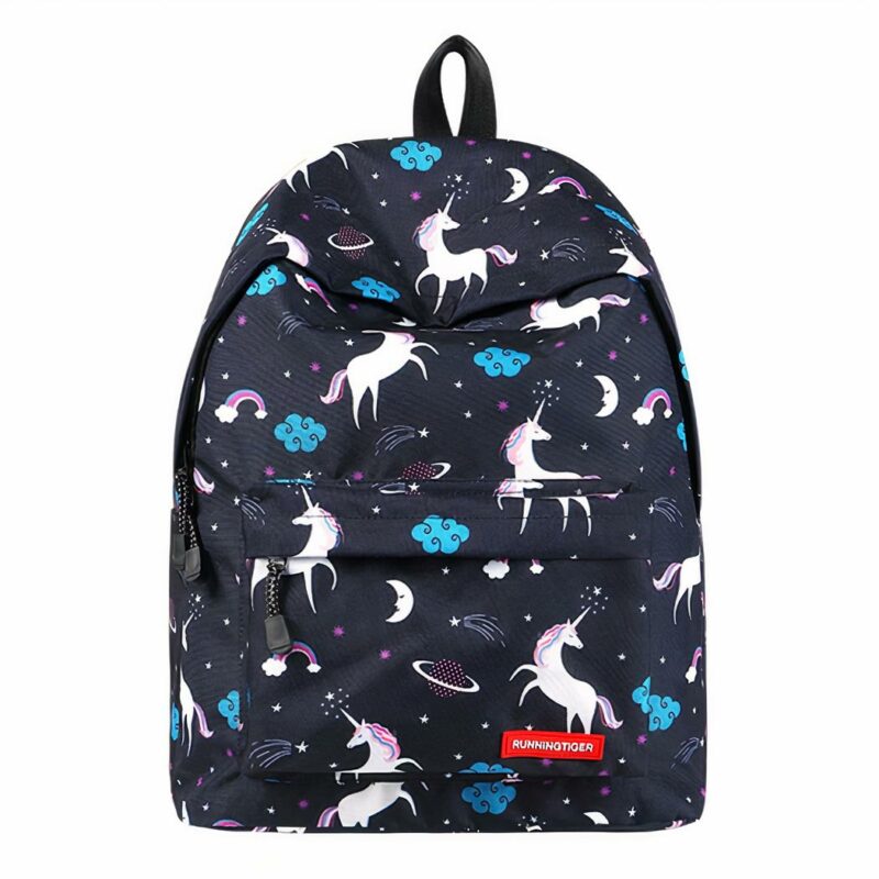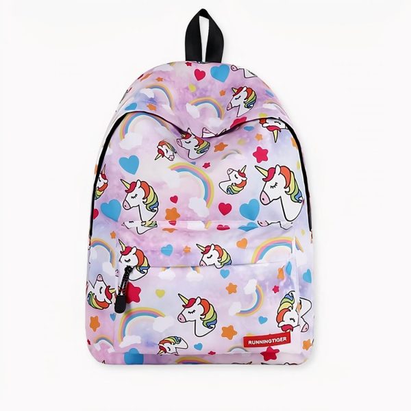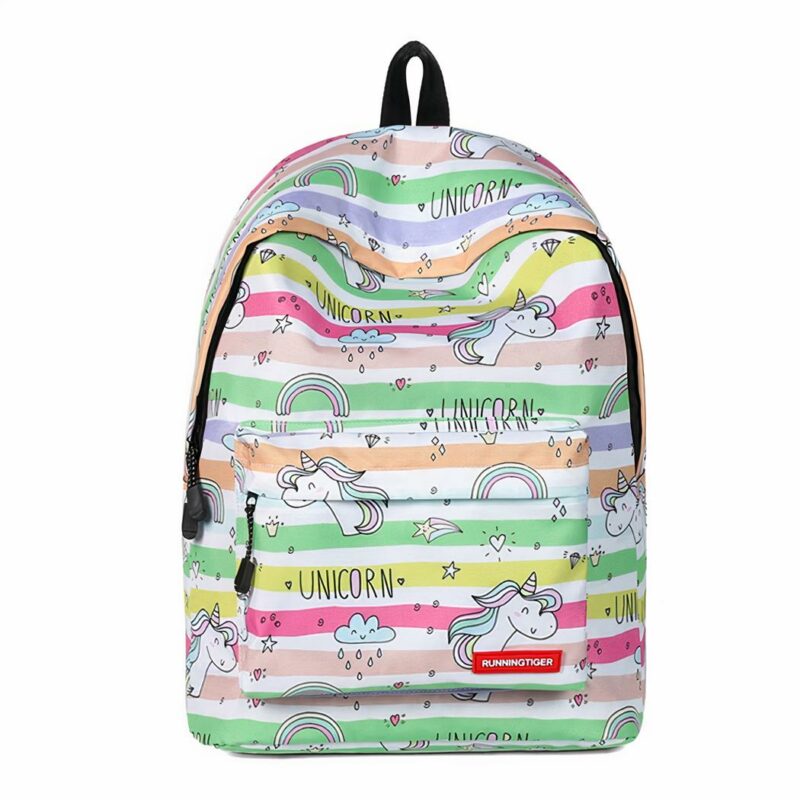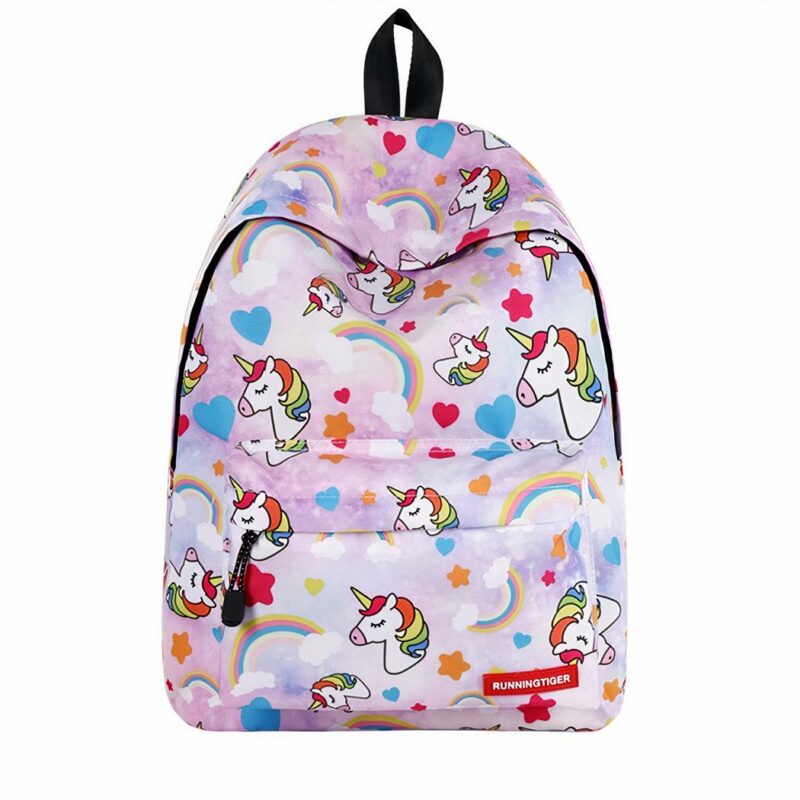 Ce sac à dos coloré et mignon est fait de tissu durable et est doté d’une fermeture à glissière robuste pour garder toutes vos affaires en sécurité. La conception unique de ce sac à dos comprend une jolie licorne sur le devant et des arcs-en-ciel sur les côtés. Les bretelles sont rembourrées pour plus de confort.