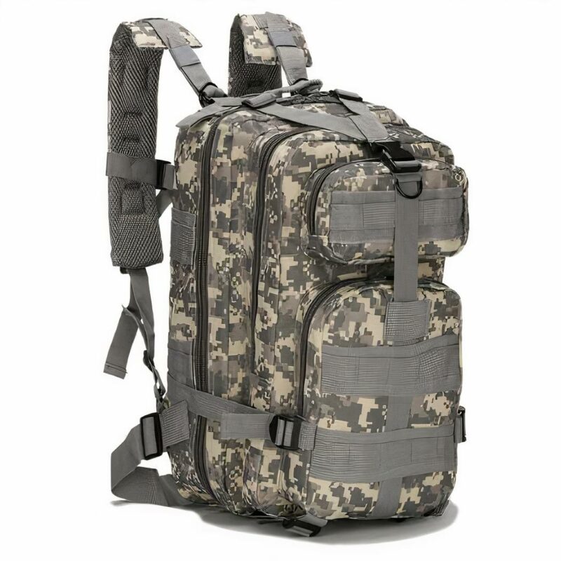 Les bretelles rembourrées sont réglables pour s’adapter à votre taille et offrir un meilleur confort et une meilleure stabilité lorsque vous portez le sac. Les sangles de compression et les poignées de transport en métal vous permettent de le transporter facilement et en toute sécurité. Le Sac à dos militaire 30L est un excellent choix pour les randonneurs, les voyageurs et les campeurs qui cherchent un sac à dos robuste et pratique.