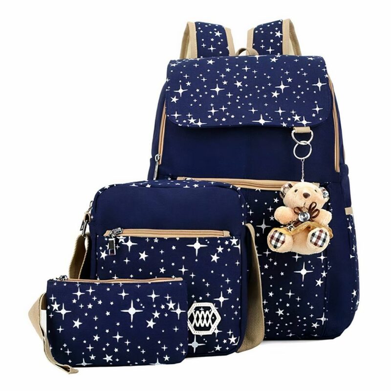 Cet ensemble de trois sacs est idéal pour les adolescentes et les femmes. Dotée d’un joli porte-clés ours mignon, le sac à dos est magnifique. Les sacs sont en tissu résistant et solide, avec une grande capacité. Ils sont parfaits pour le travail, l’école ou les loisirs. Les sacs sont légers et spacieux, avec de nombreuses poches et compartiments pour ranger votre ordinateur. Les bretelles sont ajustables pour un confort optimal.