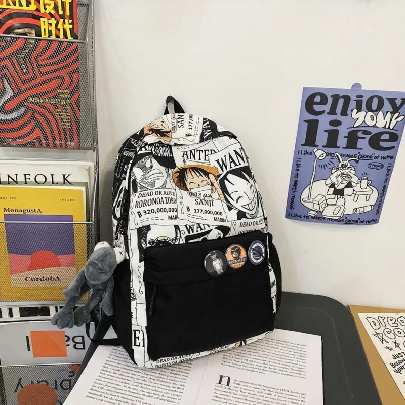 Un sac à dos inspiré par la série animée One Piece, avec un design fun d’affiches « Wanted ». Cela ajoute du fun et de l’originalité. Parfait pour les enfants qui souhaitent un sac pour aller en école primaire ou collège.