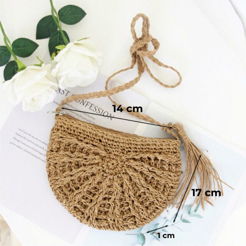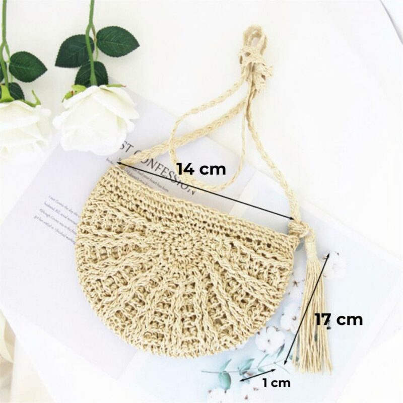 Ce sac en paille tressée est un accessoire indispensable pour compléter votre look estival. Fabriqué à partir de paille naturelle, il est léger et durable. Sa forme de besace bohème offre une silhouette unique et élégante qui s’adapte à tous les styles.
